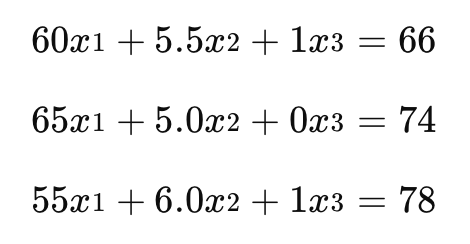 자료의 예시는 사람의 몸무게,키, 흡연 여부로 수명을 예측하는 선형시스템이다. 각 사람의 데이터로부터 다음과 같은 식을 세운다.